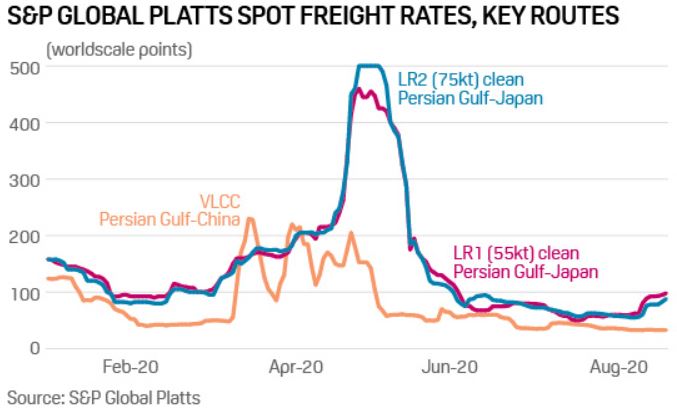 This has prompted refining and trading companies to hold larger volumes in ships, for longer durations, either due to limited demand or in anticipation of better prices in a contango pricing structure. Demand for floating storage was so high in the second quarter of this year that spot tanker freight rates hit an all-time high.