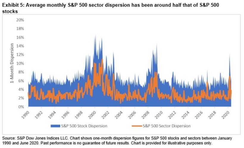 As a result, although the S&P 500 has been unperturbed by election outcomes, historically, evidence suggests it may be worthwhile to consider the potential benefits of using sectors to express views. Indeed, not only can picking sectors offer around half the potential value of stock-picking – Exhibit 5 shows that the average monthly S&P 500 sector dispersion (3.08%) was around half the average S&P 500 stock dispersion (6.77%) – but S&P 500 sectors have offered greater capacity for investors looking to express views.