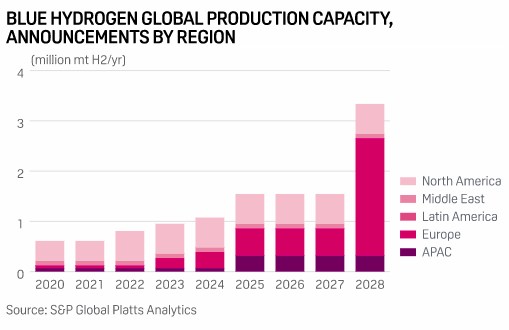 Prices for blue hydrogen -- produced from natural gas via steam methane reforming with carbon capture and storage -- have risen in recent days, driven by stronger natural gas prices in Europe.