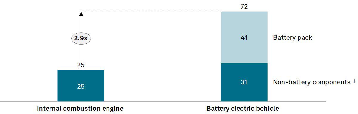 A typical ICE passenger vehicle contains roughly 25 kg of copper per vehicle,9 mostly used in the electrical wiring harness that connects the different features (including HVAC modules, powertrain systems, emission control systems, etc.) and electrical controls. Copper is also used in windings on the alternator and on the low voltage battery.