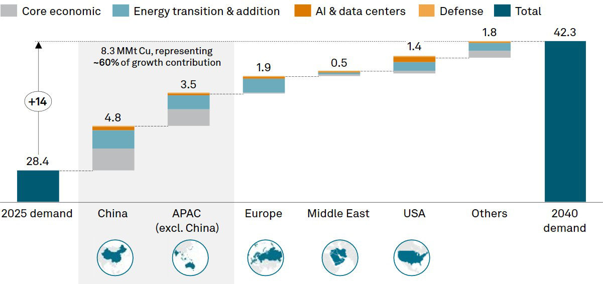Figure 3. Net change in global copper demand by region (2025 vs. 2040)