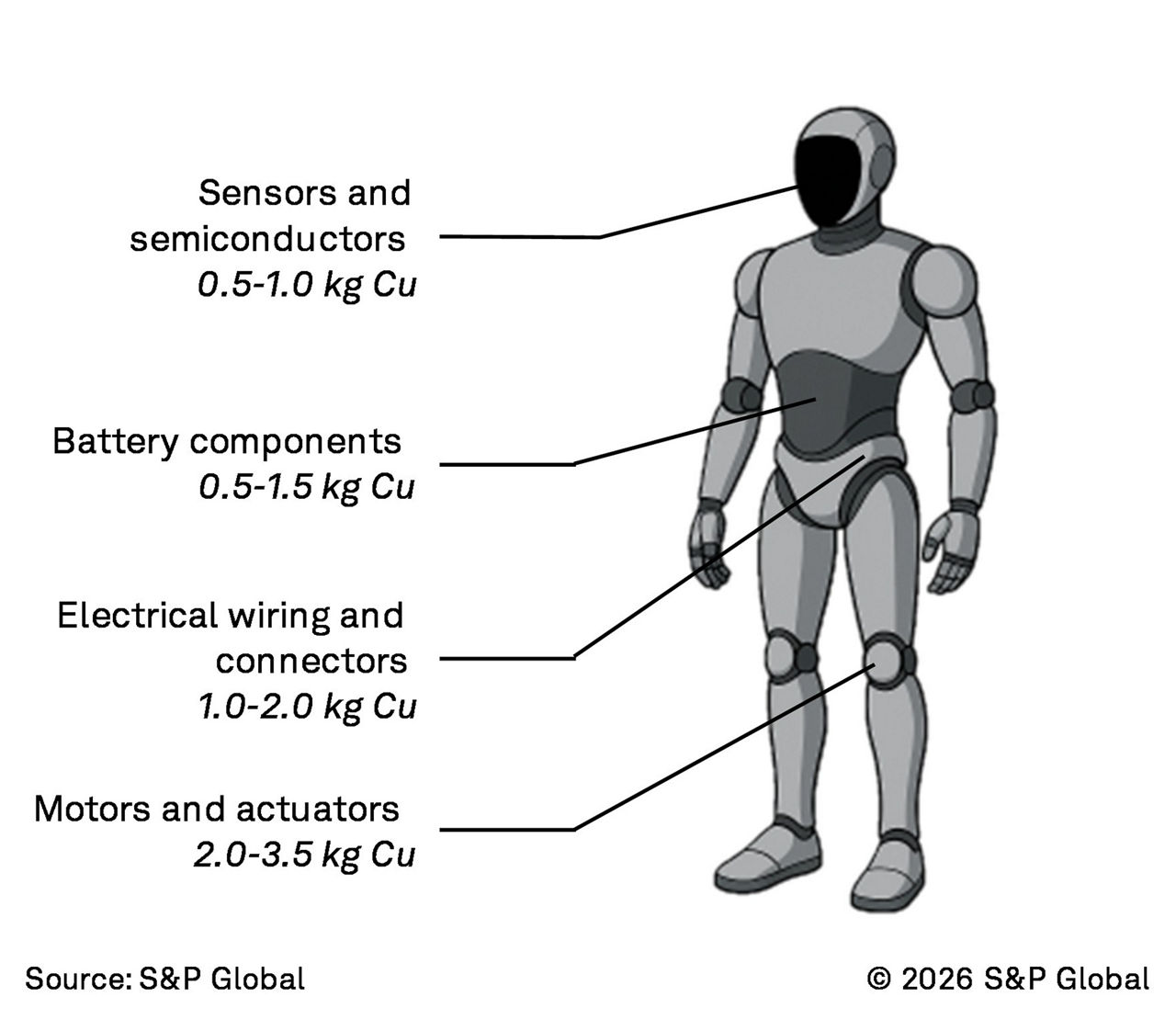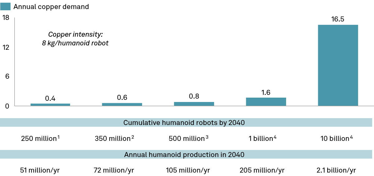 The world is entering a time in which economic demand, grid expansion, renewable power generation, AI computation, digital industries, electric vehicles and defense – all these – are scaling all at once. As a consequence, global copper demand is on course to surge 50% by 2040, not only along the vector of the familiar markets that have built the modern world, but also along these new vectors of energy transition, artificial intelligence, data centers, and defense modernization and battlefield electrification. And there is a possible new vector that could become clearer by the beginning of the next decade – the arrival of humanoid robots.