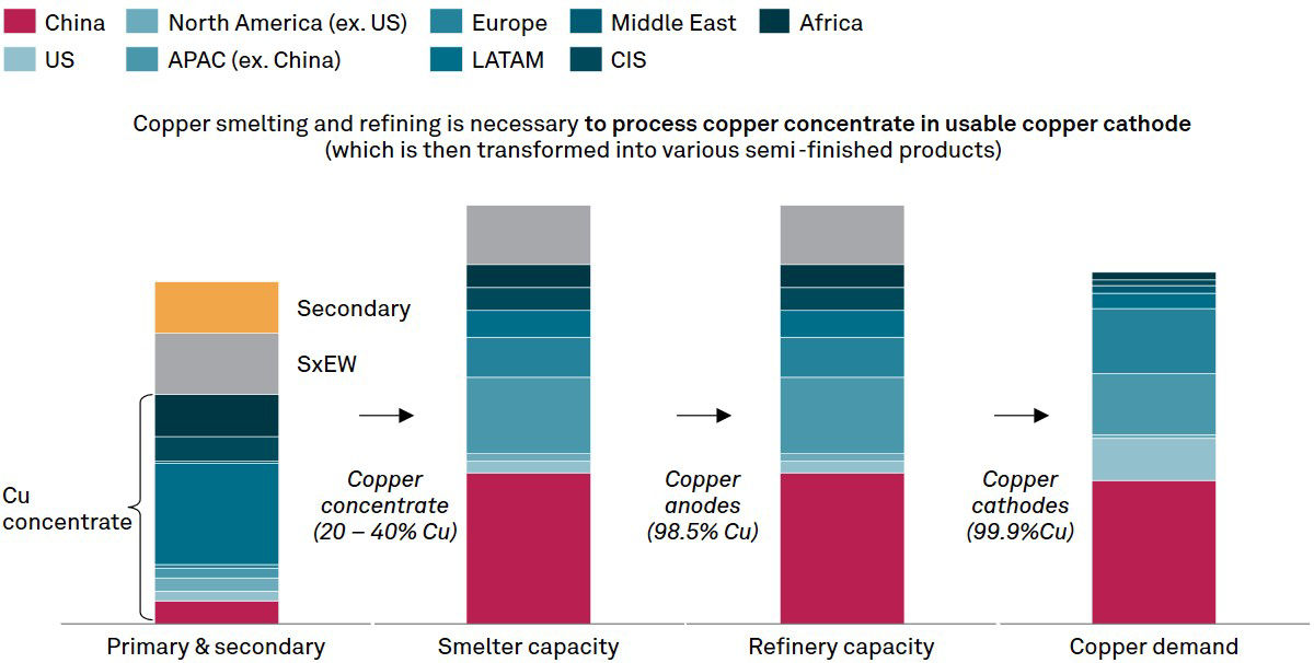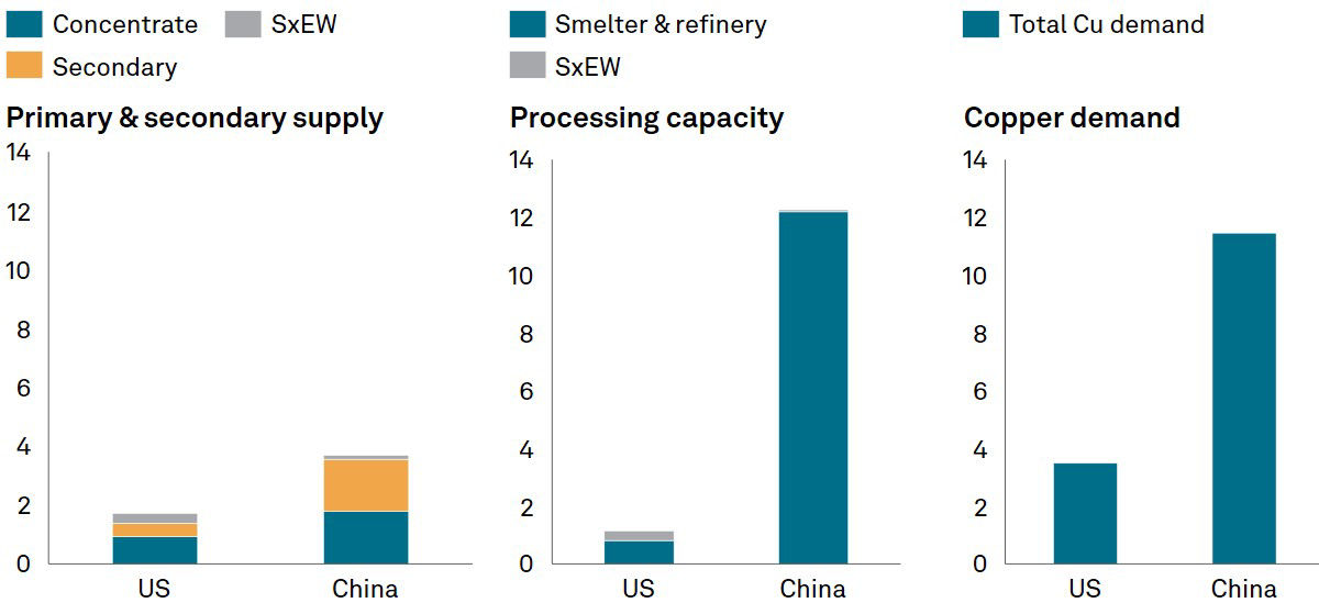 The supply section assesses the challenges to meet rising copper demand through new mine development, processing, refining, and recycling. Declining ore grades, regulatory and permitting delays, unbounded litigation, and the concentration of smelting capacity – all these have created structural constraints that could lead to persistent shortfalls and sharper competition for supply and possibly supply shocks. The supply section includes a “teach-in” about the processing system, the complexity and challenges of which are not well recognized.