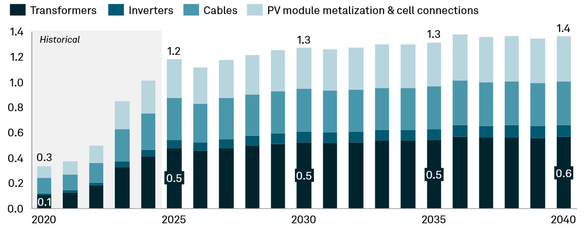 Figure 8. Energy transition copper demand by sector (2020–2040)