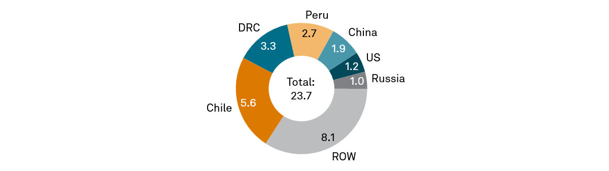 1. Includes indirect copper demand assigned to data centers from T&D and clean tech. This amount was subtracted from those sectors to avoid double counting.
