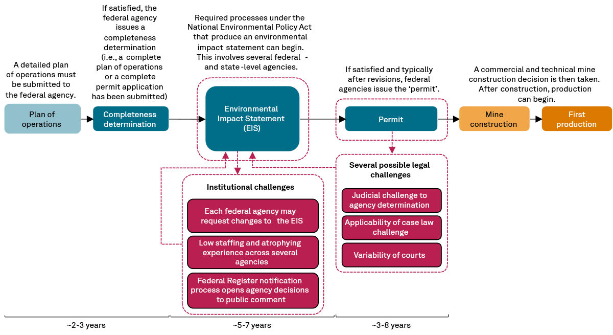 For all countries, it is important to consider the prospect of legal risks. The number of stages at which cases can be brought affects cost, uncertainty, and delay. Reducing the scope for legal challenges while protecting recourse to courts for legitimate complaints could significantly reduce mine development times.