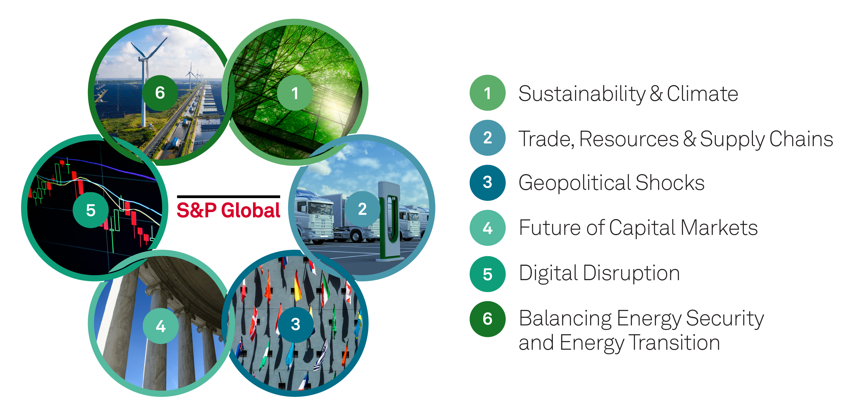 The disruptions at play are reshaping the global economy, capital markets and geopolitical order for the long term. Both challenges and opportunities will emerge from this period of profound transformation. That’s why we have asked some of our most experienced research leaders to pause, reflect and look forward to 2030 to help you understand the forces that are disrupting the world and creating the future. This journal, the inaugural edition of S&P Global’s Look Forward series, is the result. Guided by S&P Global’s Research Council, these authors have drawn on their deep expertise, insights and data to examine subjects as diverse as physical climate risk, the end of the “cheap-money” era, a nearly $25 trillion funding gap to meet Paris Agreement decarbonization goals and the emergence of a new style of leadership powered by female CEOs.