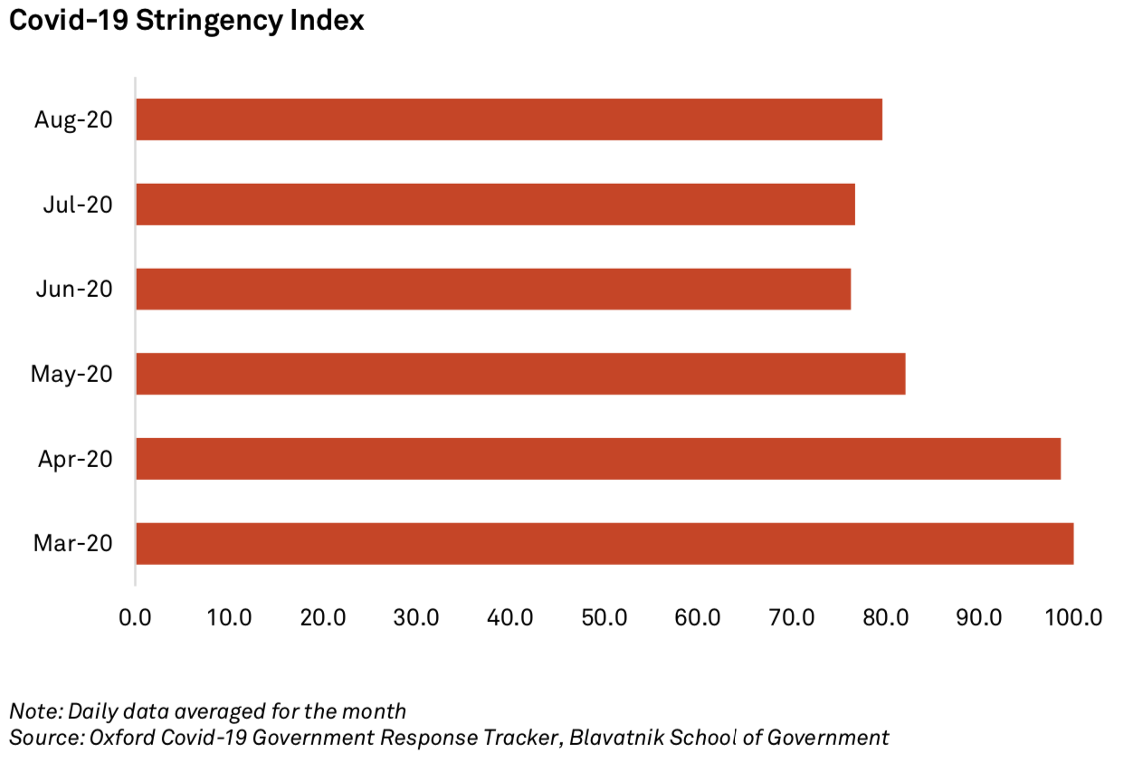 Despite the rising number of cases, another nationwide lockdown, and hence, another shock to economic activity as experienced in April-May, is unlikely. Oxford Stringency Index shows that the stringency of lockdown in India has reduced from 100 to about 80, where it stays. With ‘unlock’ already in its fourth phase, majority of the sectors have been allowed to operate.
