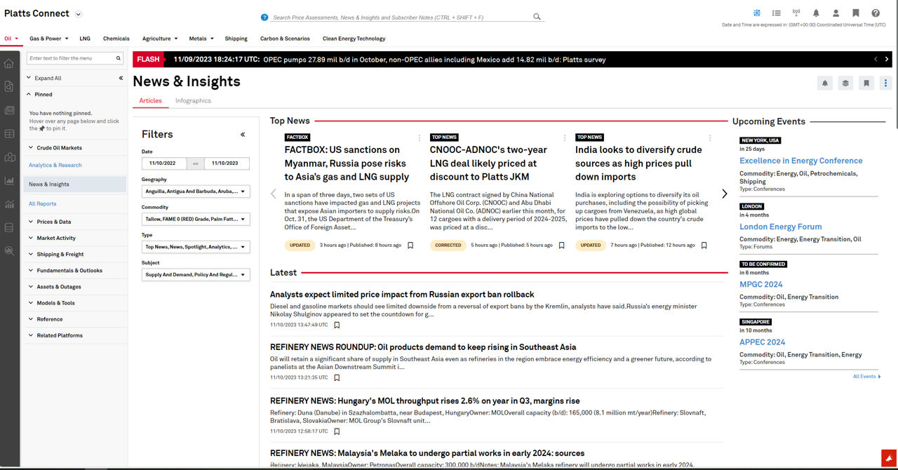We provide daily and weekly intelligence to allow you to manage costs, find new opportunities and respond to market changes swiftly – all in one place. Our Crude and Refined price assessments and benchmarks are updated daily to ensure you are always trading at market-validated prices. Our tenders reporting and arbitrage calculators allow you to find those new business opportunities.