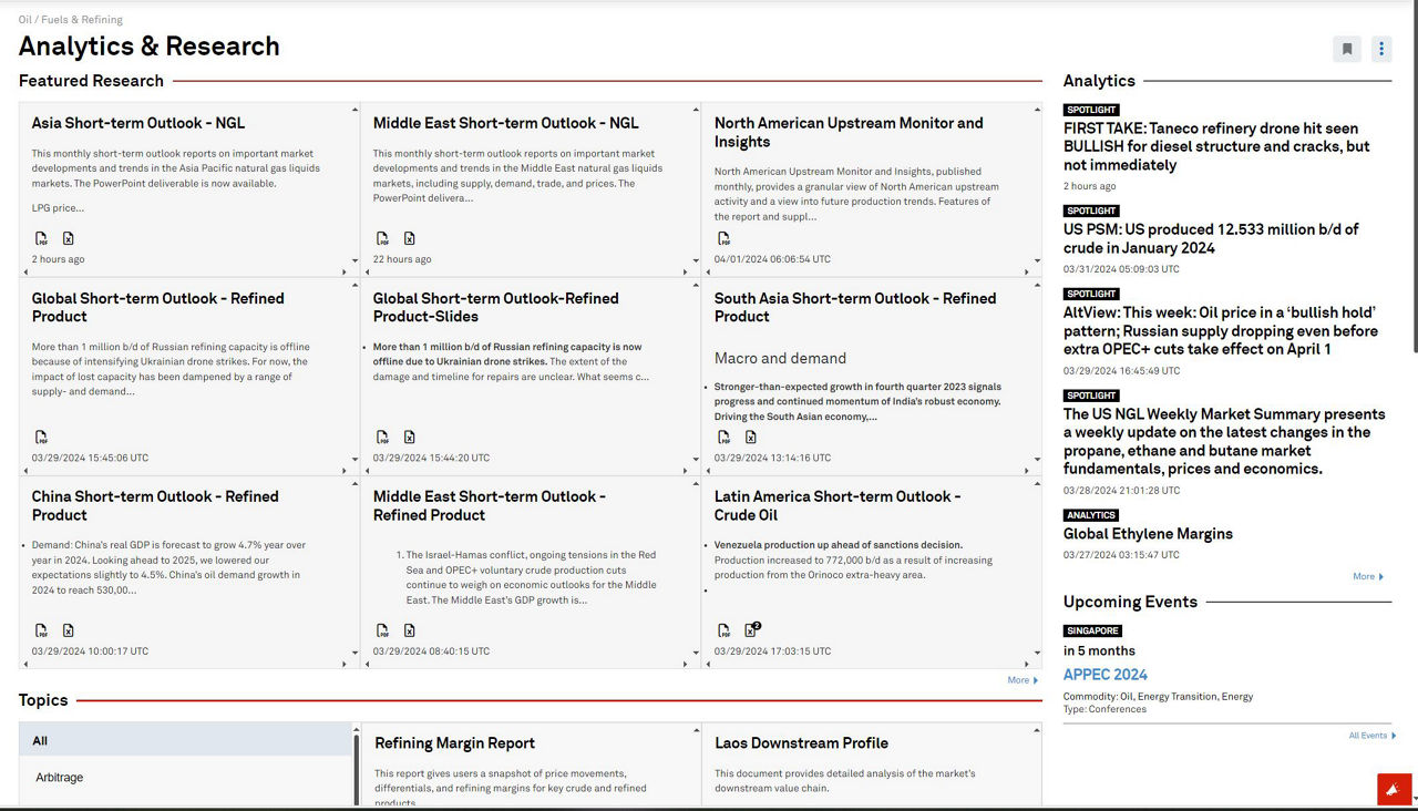 Sharpen your edge in the dynamic oil market with extensive historical data, real-time daily reporting, and detailed short- and long-term outlooks.