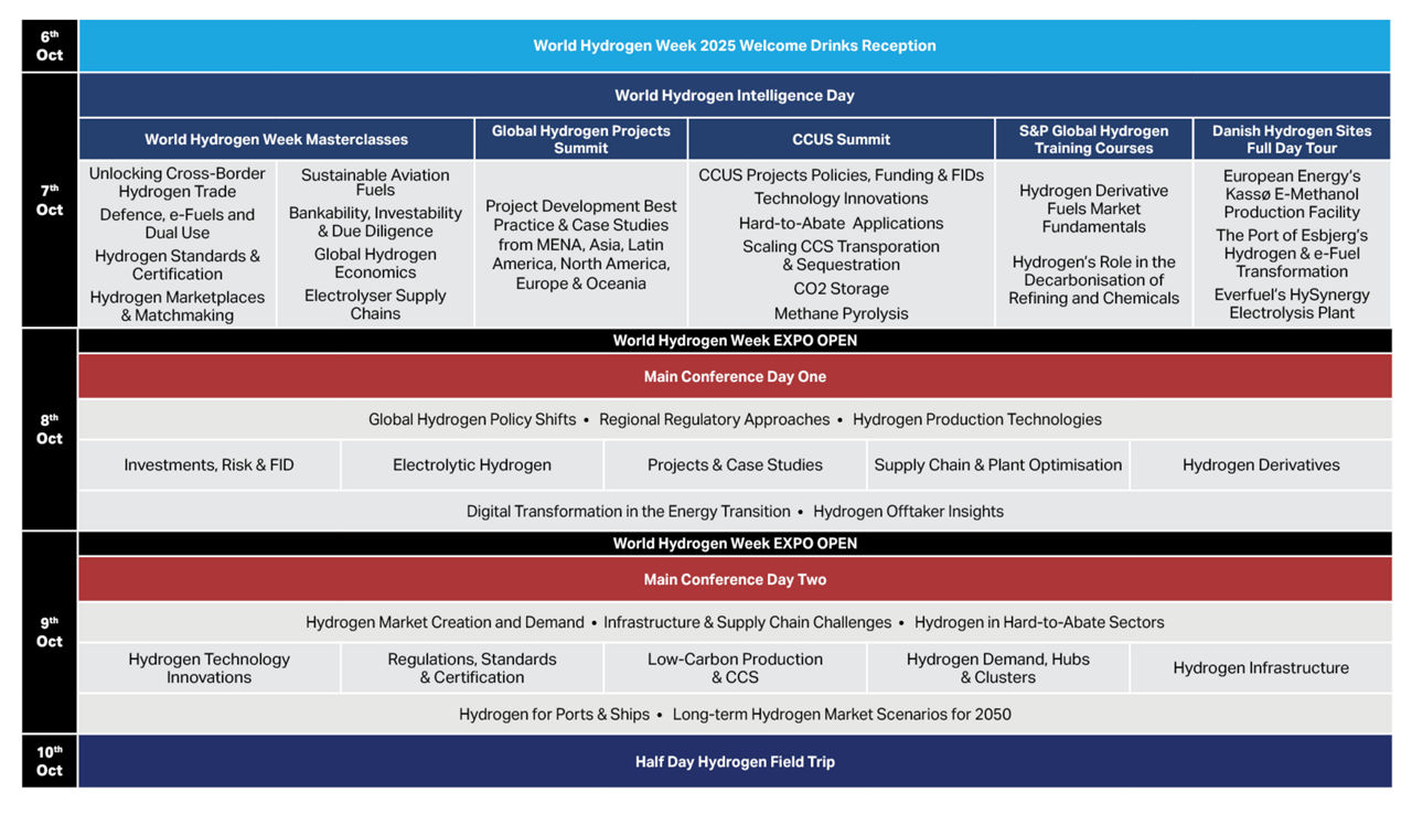 S&P Global Energy and World Hydrogen Leaders present the 6th Annual World Hydrogen Week, taking place from 6 – 10 October 2025 at the Bella Center in Copenhagen.