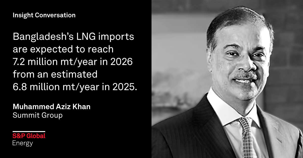 Muhammed Aziz Khan, chairman of Summit Group, spoke with S&P Global Energy Platts Editorial Lead Surabhi Sahu about the present geopolitical risks shaping the global LNG landscape and impacting the country's LNG supply and outlook. Khan also shared Summit's growth plans, including the company's entry into the country's data center market.