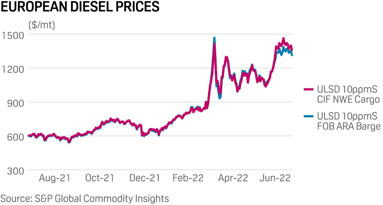 Europe has a structural deficit in diesel, and it imports more than 3 million mt of the product each month, of which Russia had been providing more than 2 million mt until its war with Ukraine.