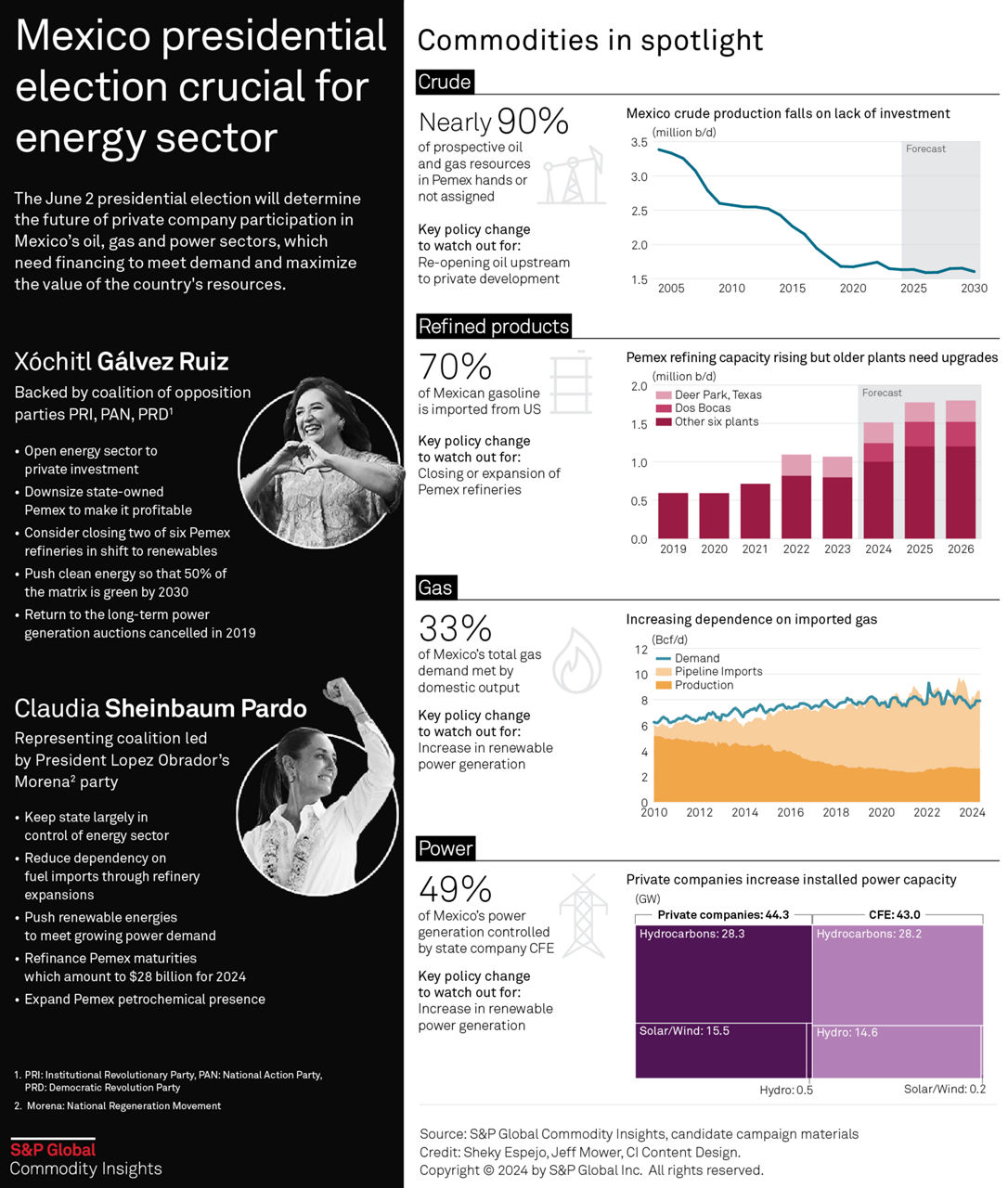 Mexicans are taking to the ballots on June 2 to elect a new president. Ahead of the election, two female candidates with contrasting views on the energy sector lead the polls. How will these election's impact Mexico's oil, gas and power sectors, which remain largely in the hands of state-owned companies and need funding to meet the country's energy need?