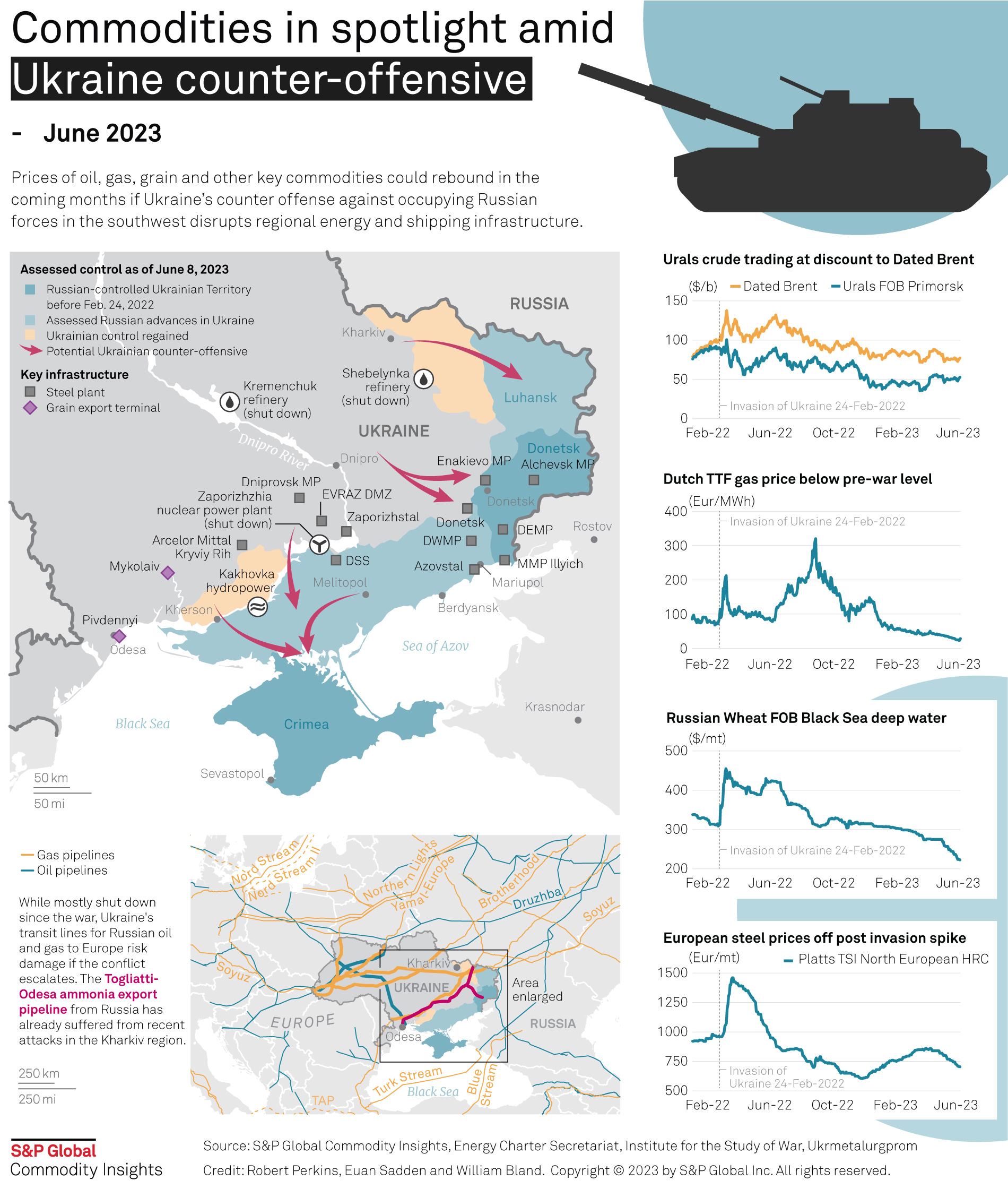 Ukraine's long-anticipated military push to reclaim its Russian-occupied territory could trigger fresh price volatility in key commodities.