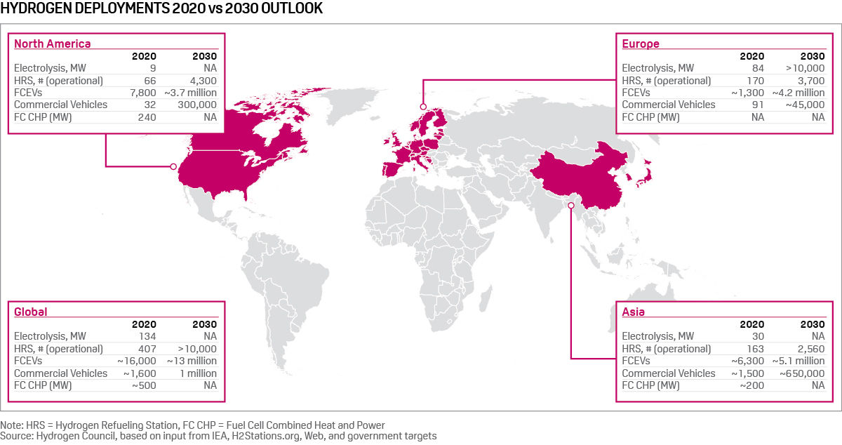Hydrogen refueling stations also would exceed 10,000 by the end of the decade, up from 407 globally now, according to the council.