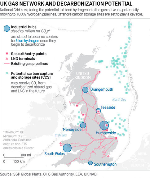 The National Grid launched Project Union in March to develop a UK hydrogen "backbone" connecting the industrial clusters identified in the UK government's industrial decarbonization strategy with a 2,000 km network of 100% hydrogen pipelines by 2030.