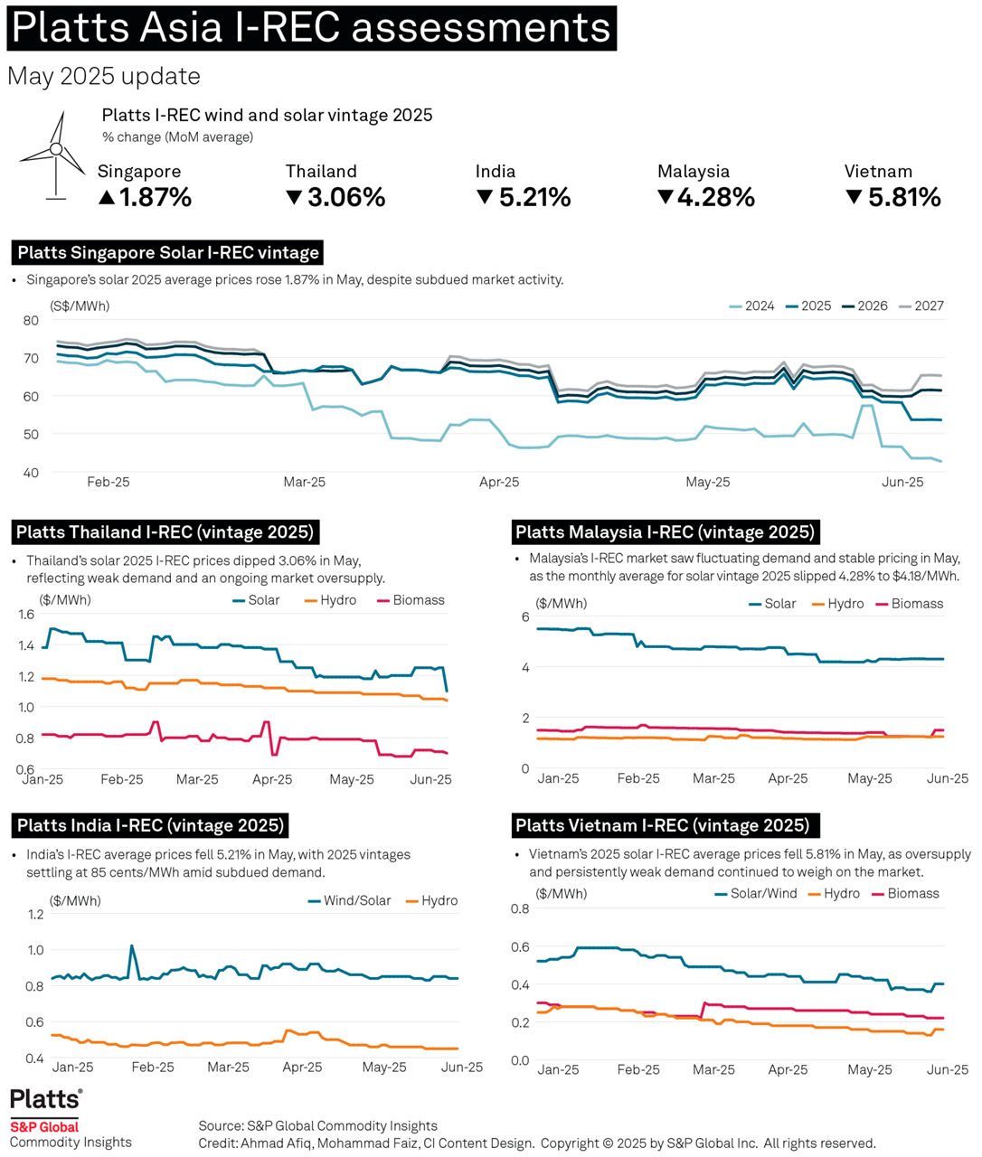 Asia’s International Renewable Energy Certificate markets saw thin demand across key countries in May, putting pressure on prices.