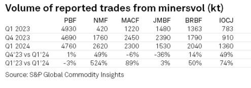 S&P Global observed 49% of spot trades concluding on fixed-price basis in Q4 2023 as compared to 64% in Q1 2024, while 51% of trades concluded on a floating basis against 36% over the same period.
