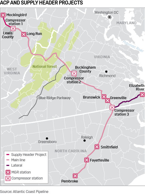The 600-mile natural gas pipeline, designed to deliver 1.5 Bcf/d of shale gas to the mid-Atlantic region, has seen a number of permits struck by the same court, and lead developer Dominion Energy has already delayed the in-service target several times.