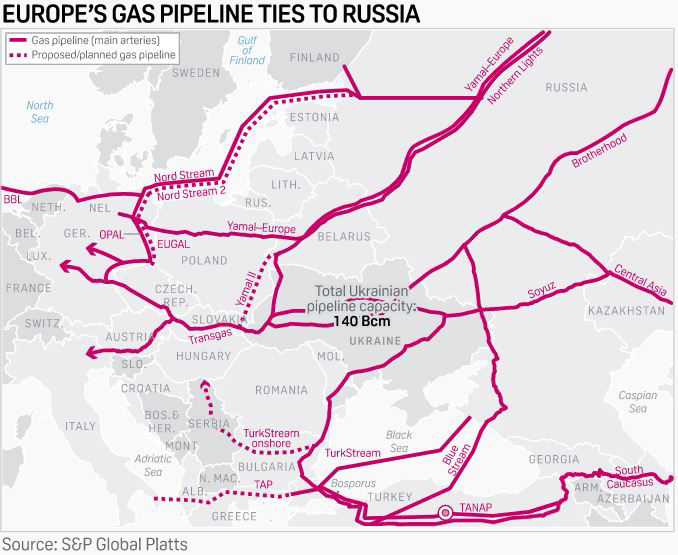 Nord Stream 2 -- which has been criticized by the European Commission, the US and countries in eastern Europe for focusing too much European gas import capacity on one route and one source --- will double the Russia-Germany subsea gas export corridor to 110 Bcm/year.