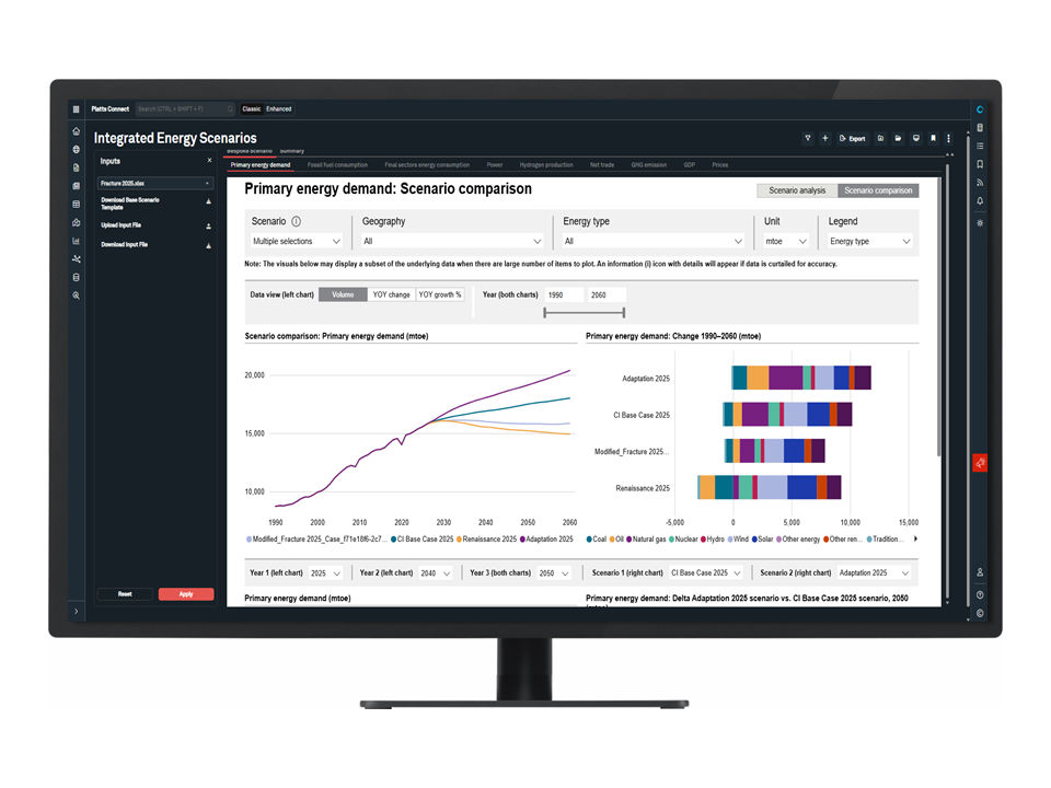 Our new Integrated Energy Scenarios tool elevates our existing capabilities, enabling you to explore more deeply our scenarios and net-zero cases. By interacting directly with the complex data series that underpin each outlook and conducting in-depth comparative analyses, you can identify the Essential Intelligence required to adapt your business strategy to an evolving energy transition.