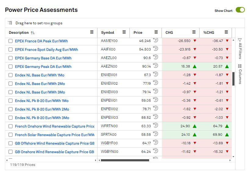 With access to our comprehensive EMEA Gas & Power Market Data, gain full price history so you can dive into historical price trends, analyze market patterns, and strategize your next moves to stay ahead of the competition.