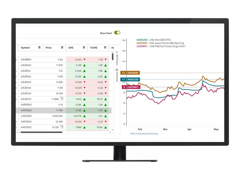 As the provider of the global LNG benchmark, Platts JKM, along with regional LNG price benchmarks, we deliver actionable insights that help you understand market movements and capitalize on trade flows. Our LNG Market Data service offers the transparency you need to identify opportunities, manage supply chains, and make swift decisions in the global LNG market.