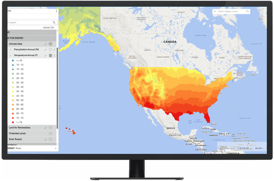 Identify optimal land for renewable projects using enhanced hazard, regulatory, and infrastructure data to meet sustainability goals.
