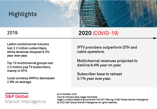 We anticipate the region's multichannel subscriber base to decline 0.7% in 2020, with revenues declining 6.6% due mainly to currency depreciation.
