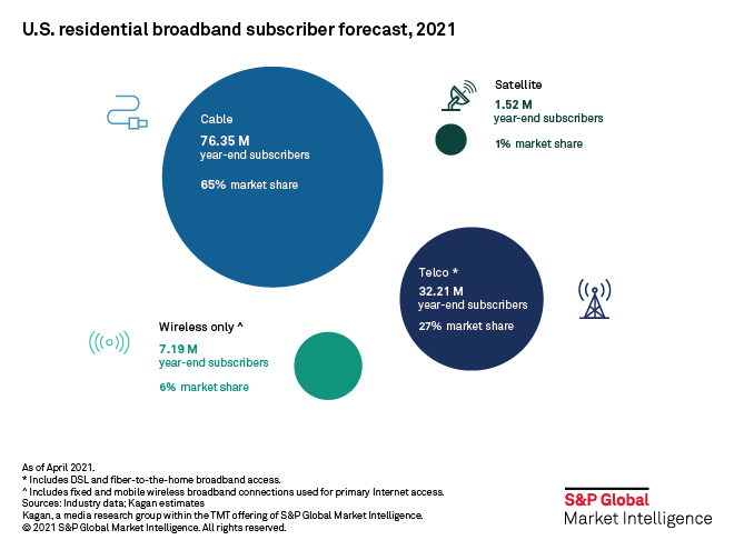 U.S. broadband providers are carrying considerable momentum out of the pandemic despite increased competition and impending service maturity with penetrations nearing 90% of occupied households, according to the updated forecast from Kagan, a research unit of S&P Global Market Intelligence.
