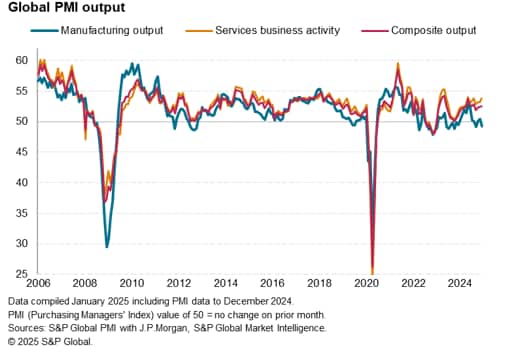The headline J.P. Morgan Global Composite PMI® Output Index, covering manufacturing and services in over 40 economies, rose from 52.4 in November to 52.6 in December.