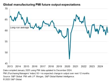 As observed from the seasonally adjusted global PMI Quantity of Input Purchases Index, manufacturers worldwide once again lowered the amount of inputs purchased in December after raising their buying activity for the first time in five months during November. This renewed drop in purchasing was largely underpinned by a broader manufacturing sector malaise, as goods new orders broadly shrank in December amidst the lowering of demand in view of heightened uncertainties in the new year. The level of business confidence declined globally to a three-month low in December, falling further below the long-run average as concerns rose around the potential impact of US tariffs on global goods production. Comments from the manufacturing panel citing 'uncertainty' globally had also risen further in December to more than three times the long-run average, the highest since May 2023.
