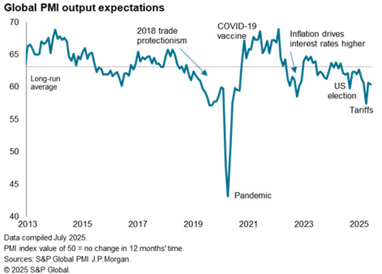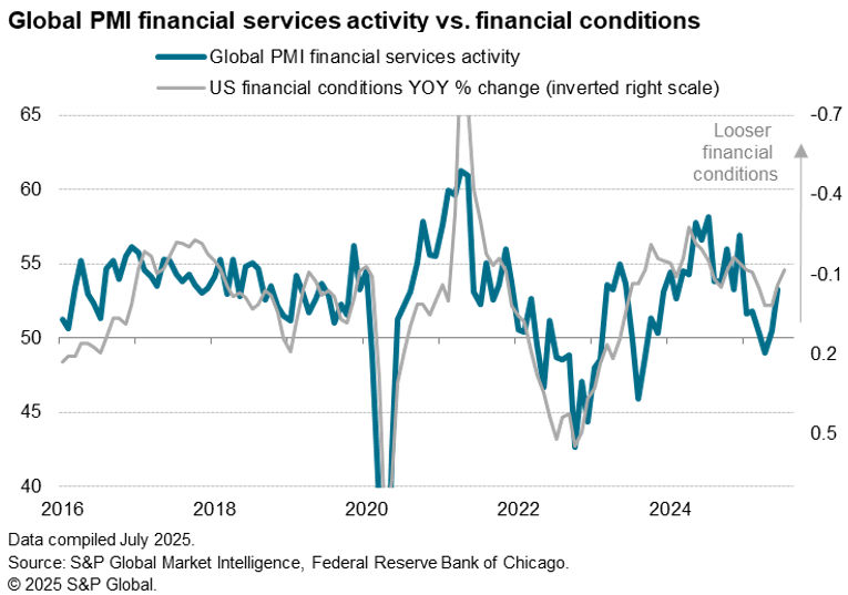 On the other hand, July has so far seen some calming of geopolitical risks and tariff worries, and buoying financial markets providing a tailwind to financial services activity.