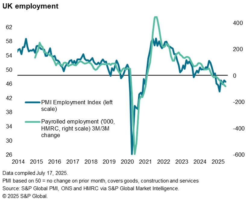 These rate cuts should help strengthen the economy. Barring any new shocks to the system after the second quarter stumble, we should therefore see the UK running at a better speed as we go through the second half of the year and into 2026. The next major ‘time-check’ will come from the flash PMI on 24th July, in which we want to see the survey prices gauge stay low, while the output and employment gauges show further signs of the Budget and tariff shocks fading. This will set the scene for a better second half of the year.