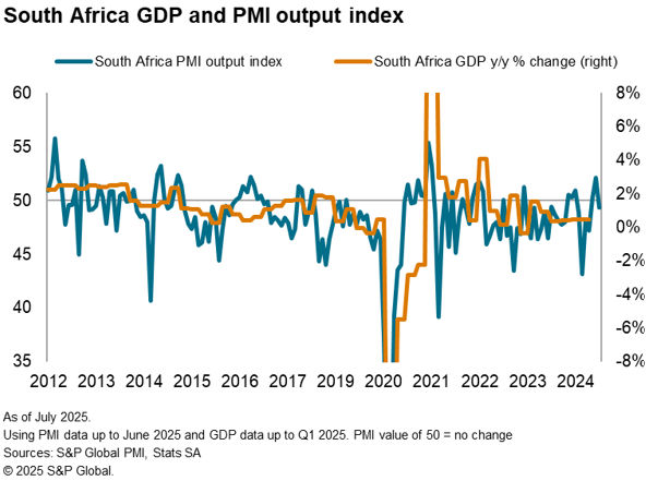 The PMI has earned a strong reputation as a leading indicator of the business cycle at both the national and global level, and can be used to accurately anticipate official economic data such as GDP or inflation. For instance, the South Africa PMI is released on the third working day following the end of the reference month, whilst first estimates of quarterly GDP statistics are typically only released over two months after the end of the reference quarter. This means that PMI users can get an initial steer on economic activity from the first month of PMI data in a particular quarter approximately four months prior to first estimate GDP releases.