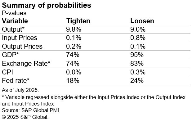 Model suitability can be measured using the Akaike information criterion. This measure signalled that, of the prices metrics used, the PMI Output Prices Index is better than the PMI Input Prices Index for modelling interest rate decisions. It is also slightly better than consumer price inflation (CPI), assuming that CPI data is not yet available for the most recent month. Applying a two- or three-month average of the PMI Output Prices Index was shown to further improve the suitability of the model.