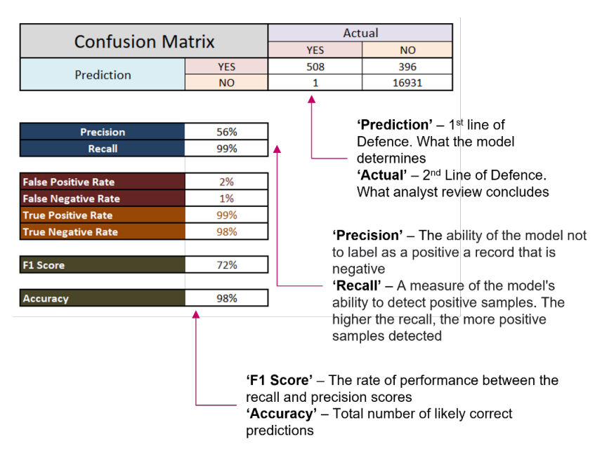 Using the S&P Global Market Intelligence model, the partner organisation wanted to understand how successful it would be in clearing false positivies and identifying true positives. To capture the overall validity of the model, both S&P Global Market Intelligence and the partner organisation conducted a series of benchmarking and validity testing scenarios. These comprised the following: