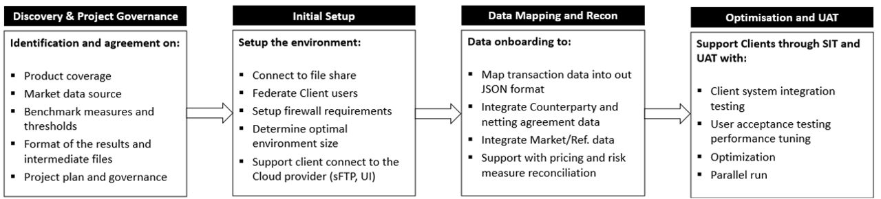 While the main onboarding activity is mapping client’s trade files, counterparty hierarchies and legal documents, the chart below summarizes the onboarding activities S&P Global provided: