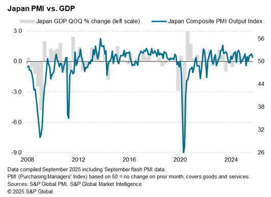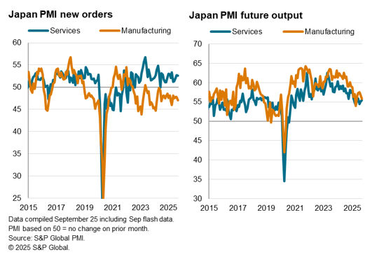 Covering 10-19 September, the flash survey data collection period partially coincided with the announcement of new tariff reductions on imports from Japan to the US, which was later implemented on September 16. However, qualitative data from survey respondents showed little changes thus far, with subdued manufacturing sector business confidence further reflecting cautiousness among firms.
