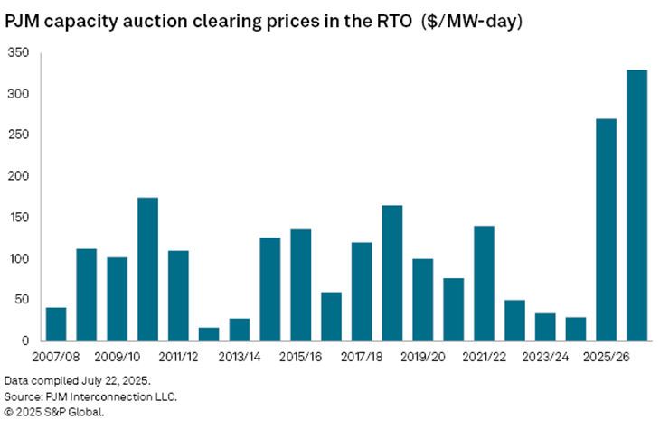 PJM's recent auction cleared at $329 per megawatt-day. Between the 2024–25 and 2025–26 auctions, PJM implemented its new effective load carrying capability (ELCC) accreditation. Despite these capacity credit changes, only 426 more megawatts cleared in this auction than previously. The changes to the capacity market may not sufficiently incentivize new builds, while also increasing costs for customers. This situation is aggravated by a compressed timeline, as PJM plans to return to a three-year forward market.