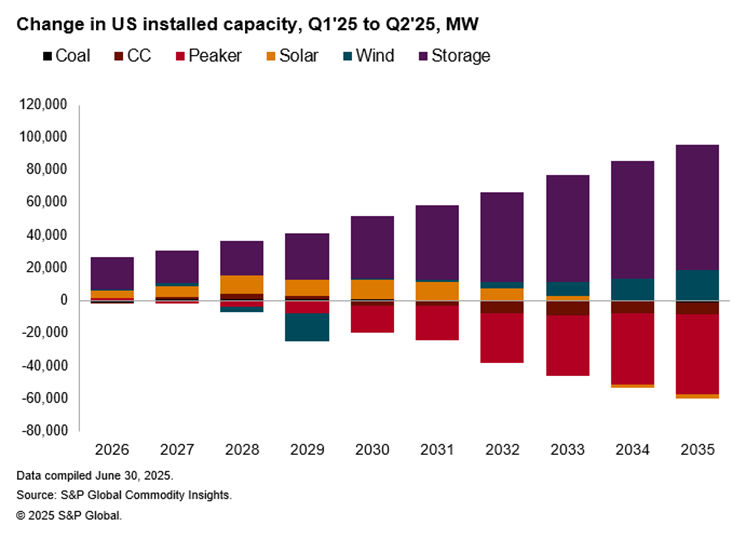 Based on the Q2 2025 S&P Global Market Indicative Power Forecast, a reduced geographic footprint for new gas projects is expected. Energy storage is expected to compete with gas turbines as a reliability resource, driven by its declining cost profile. Retail customers will need to respond to elevated power prices, which may remain insufficient to incentivize new development. As hyperscalers increasingly explore firm, zero-carbon options, more nontraditional corporate deals involving geothermal, nuclear, and hydropower projects are likely to emerge.