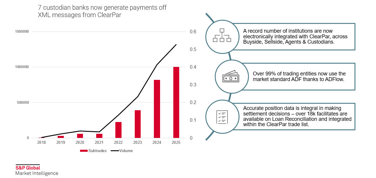 In addition to the over-200 integrated buyside, sellside and agent accounts; in 2025, 7 custodians have received trade messaging (including payment instructions) on over a million transactions. What began as the automation of document delivery ten years ago, is now a near-fully automated payment workflow implemented across the majority of trades in the loan market.