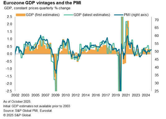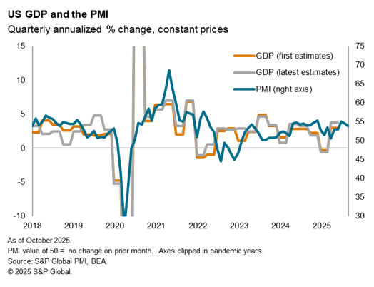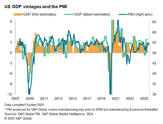 In the US, the PMI data compiled by S&P Global exhibit a slightly higher correlation with initial (advance) GDP estimates (76%) than with the latest (revised) GDP estimates (76%) when the pre-pandemic years are compared.