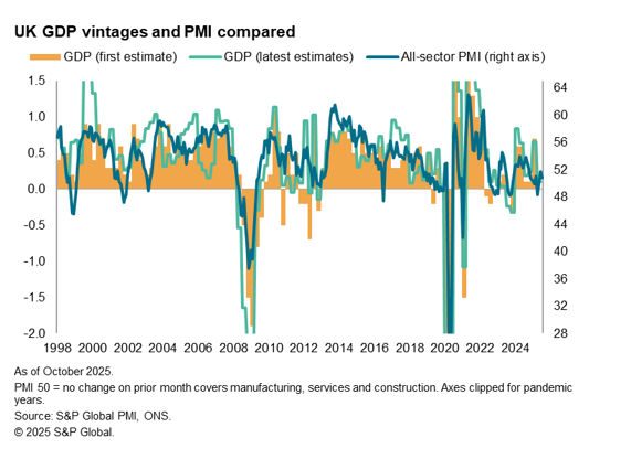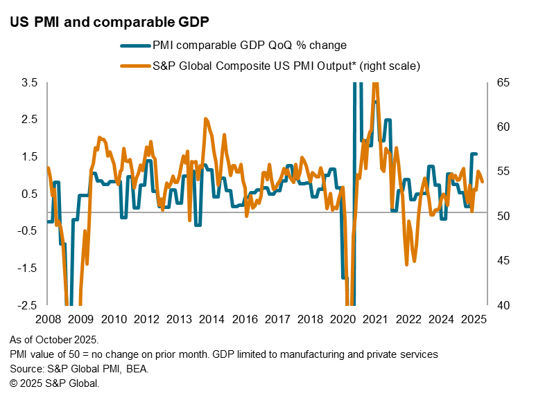 The weaker post-pandemic US correlation in part reflects differences in coverage of the PMI with GDP. If GDP is restricted to the same sectoral coverage of the PMI (namely privately traded services and manufacturing), the post-pandemic (since 2021) correlation rises to 68% against latest estimates of GDP, therefore rising closer to the pre-pandemic average.