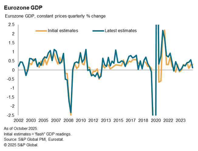 In the eurozone, since 2003 - when initial estimates first became available - the average absolute error (ignoring +/- signs) of GDP initial estimates relative to latest estimates was 0.2% in the years before the pandemic. The maximum was a 0.8% revision. However, there is a clear tendency for initial (“flash”) GDP estimates to understate GDP growth over the past two decades as eventually determined by the latest GDP estimates. Initial estimates are in fact twice as likely to be revised higher than lower. This is most evident in the years leading up to the pandemic. Between mid-2013 and mid-2019 initial GDP estimates were revised lower on only five occasions, but revised higher on some 20 occasions.