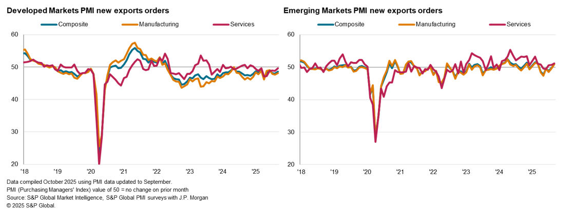 Regionally, the contraction in new export business narrowed and was concentrated within developed markets in September, as new export orders from emerging markets returned to growth, albeit only marginally.