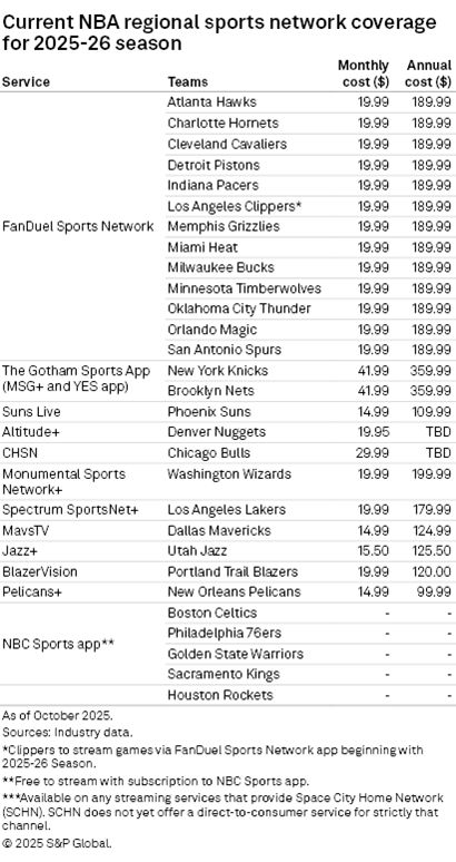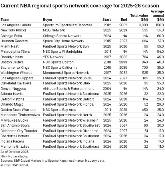 The NBA is also preparing for a national streaming RSN launch, anticipated by the 2027-28 season, which could attract up to 20 teams looking to transition from local deals. NBA Commissioner Adam Silver has highlighted the necessity of resolving local TV issues before expansion, indicating a strategic approach to the league's future media rights landscape.