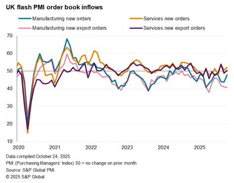 While service sector growth ticked higher in October, it was still the second-lowest growth rate seen over the past five months. More encouraging was a more pronounced uplift in service sector new business growth to the second-highest seen over the past 11 months, hinting at improving demand.