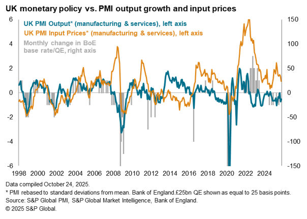 While the flash PMI data indicated current strong US growth persisting into October, the surveys also showed business confidence waning in the US amid concerns over the impact of government policy, especially tariffs. The impact of these tariffs will also be assessed on other economies, and weighed against any support to economic growth from other factors. The eurozone flash PMI data in particular showed welcome signs of domestically-driven growth, and firms in mainland China reported improving economic conditions in September thanks to expanding sales to both domestic and non-US customers. However, while other economies such as India, Thailand and Vietnam are also seeing rising manufacturing sales, downturns were reported in many other economies such as Japan, Taiwan, Brazil, Mexico and Canada, often blamed on US tariffs (read our September global manufacturing overview here).
